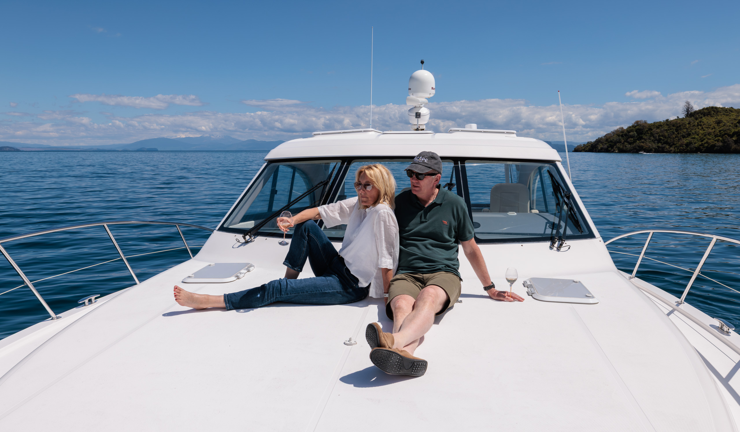 Matariki Nui is a luxury vessel on Lake Taupō, purpose-built for small, private groups. Surveyed for up to 12 guests, best suited for 2 – 8 people, offering a more relaxed and spacious experience on the water.