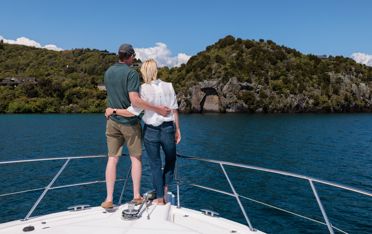 All charters are private, giving you the freedom to shape the day however you like. Cruise out to the iconic Māori Rock Carvings, or venture further to the Western Bays. Which is a quieter, more remote part of the lake that many visitors never get to see.